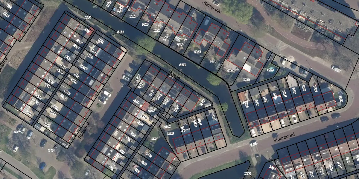 Het perceel waarop Reede 5 staat heeft een oppervlakte van 100 m². Dit is een middelgroot perceel. De perceeloppervlakte wordt geregistreerd door het Kadaster. Gedetailleerde informatie over de maten van dit perceel kunt u vinden in het rapport Kadastrale kaart met maatvoering van Reede 5.