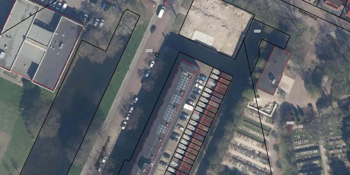 Het perceel waarop Rembrandtsingel 21 staat heeft een oppervlakte van 3702 m². Dit is een zeer groot perceel. De perceeloppervlakte wordt geregistreerd door het Kadaster. Gedetailleerde informatie over de maten van dit perceel kunt u vinden in het rapport Kadastrale kaart met maatvoering van Rembrandtsingel 21.
