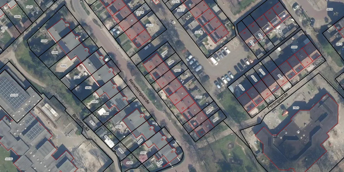 Het perceel waarop Renettengaarde 19 staat heeft een oppervlakte van 544 m². Dit is een groot perceel. De perceeloppervlakte wordt geregistreerd door het Kadaster. Gedetailleerde informatie over de maten van dit perceel kunt u vinden in het rapport Kadastrale kaart met maatvoering van Renettengaarde 19.