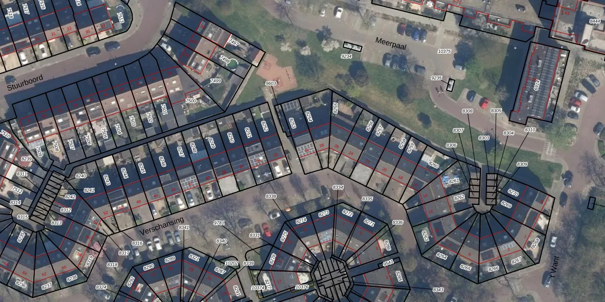 Gebruik de zoekbalk of klik op een perceel voor informatie over de adressen binnen dit perceel.