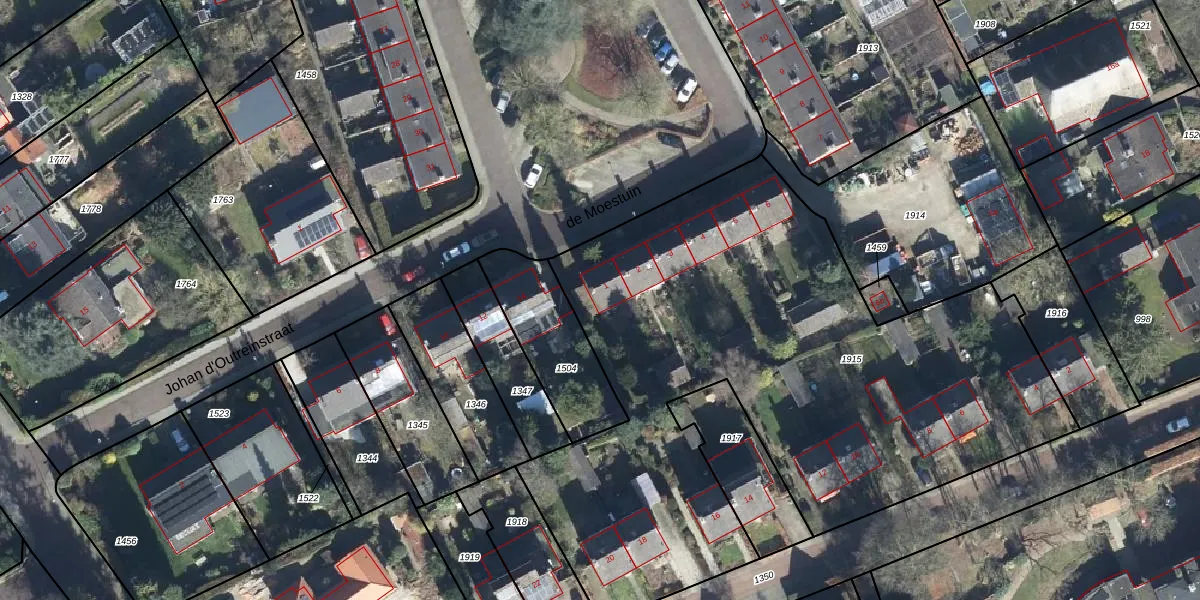 de Moestuin 1 is gelegen op kadastraal perceel RZD00C1915. Deze kadastrale aanduiding is uniek en wordt gebruikt door het Kadaster om eigendomsrechten en andere zakelijke rechten vast te leggen. Het perceel maakt onderdeel uit van de kadastrale gemeente Rozendaal.