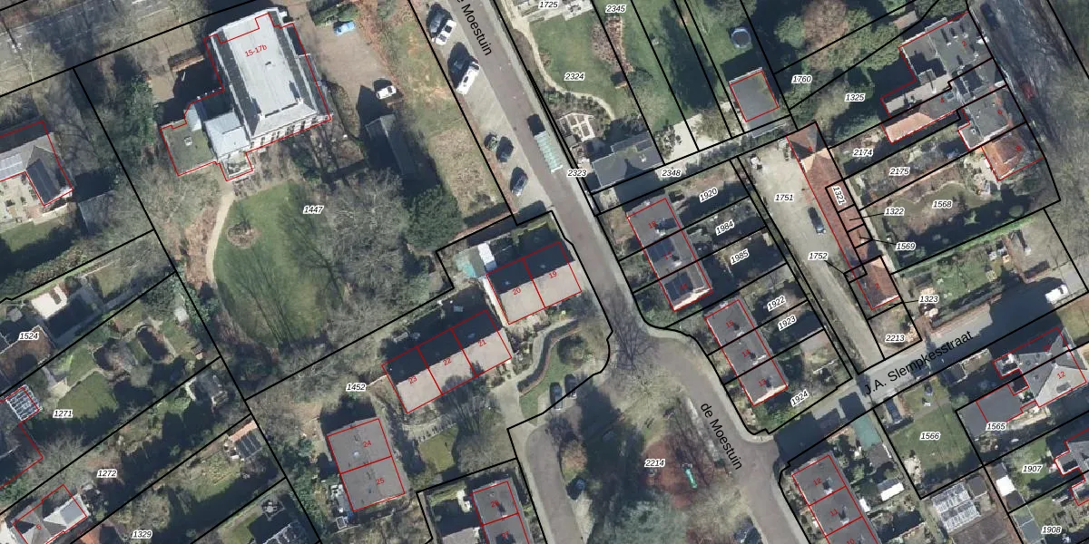 de Moestuin 19 is gelegen op kadastraal perceel RZD00C1452. Deze kadastrale aanduiding is uniek en wordt gebruikt door het Kadaster om eigendomsrechten en andere zakelijke rechten vast te leggen. Het perceel maakt onderdeel uit van de kadastrale gemeente Rozendaal.