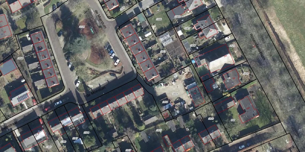 de Moestuin 7 is gelegen op kadastraal perceel RZD00C1913. Deze kadastrale aanduiding is uniek en wordt gebruikt door het Kadaster om eigendomsrechten en andere zakelijke rechten vast te leggen. Het perceel maakt onderdeel uit van de kadastrale gemeente Rozendaal.