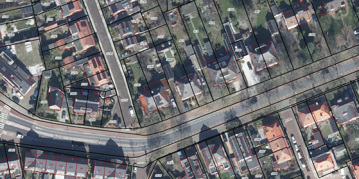 Het perceel waarop Ringallee 86 staat heeft een oppervlakte van 441 m². Dit is een groot perceel. De perceeloppervlakte wordt geregistreerd door het Kadaster. Gedetailleerde informatie over de maten van dit perceel kunt u vinden in het rapport Kadastrale kaart met maatvoering van Ringallee 86.