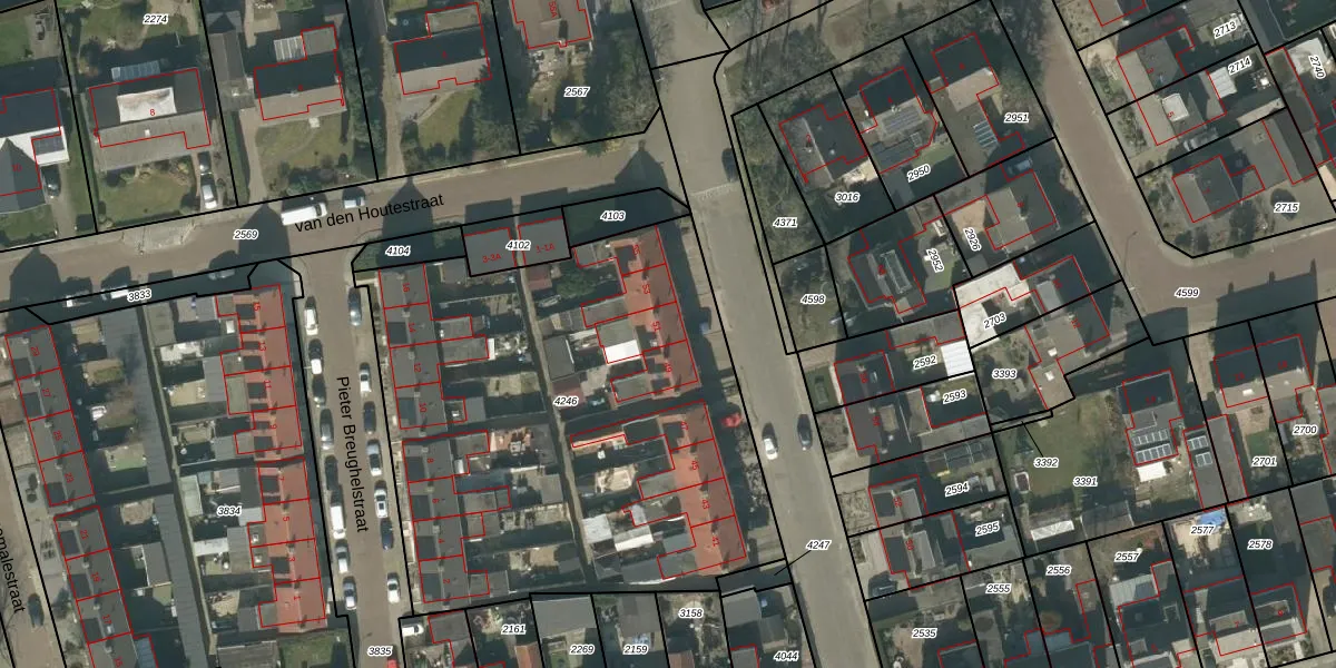 Het adres is gelegen op perceel 4246 in de sectie C en de kadastrale gemeente Rucphen. De kadastrale aanduiding is aldus RPN00-C-4246. Het perceel is kleiner dan gemiddeld in Rucphen. Het perceel is 2768 m² groot, terwijl het gemiddelde ligt op 4091,58 m². Het kleinste perceel in de kadastrale gemeente is 0 m² groot. De grootste perceeloppervlakte is 43,3 ha. Er zijn 16 adressen aanwezig op het perceel. In de Basisregistratie Kadaster (BRK) werden de grenzen van het perceel geregistreerd op 22-02-2011.