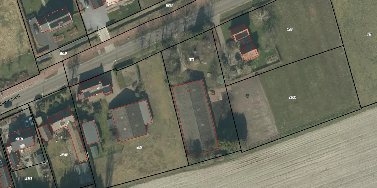 Bernhardstraat 28 is gelegen op kadastraal perceel RPN00U655. Deze kadastrale aanduiding is uniek en wordt gebruikt door het Kadaster om eigendomsrechten en andere zakelijke rechten vast te leggen. Het perceel maakt onderdeel uit van de kadastrale gemeente Rucphen.