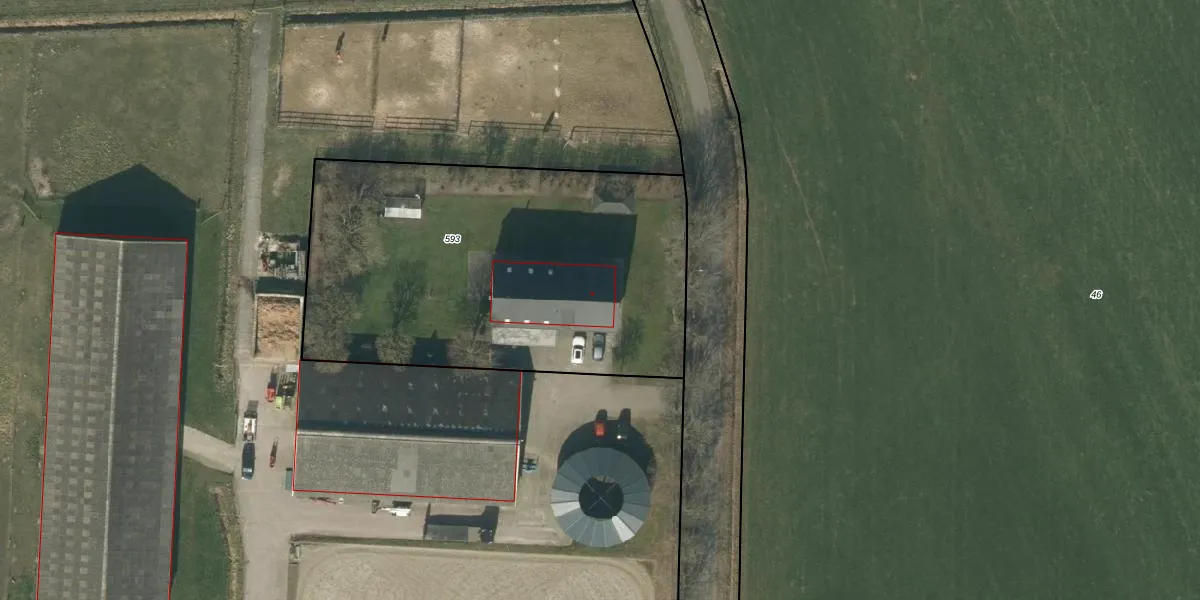 Het adres ligt op het perceel RPN00-Q-593, dat zich in de kadastrale gemeente Rucphen bevindt. Het perceel is kleiner dan gemiddeld in Rucphen. Het perceel is 2125 m² groot, terwijl het gemiddelde ligt op 4095,22 m². Het kleinste perceel in de kadastrale gemeente is 0 m² groot. De grootste perceeloppervlakte is 43,3 ha. Op het perceel bevinden zich geen andere adressen. De laatste wijziging in het de Basisregistratie Kadaster (BRK) was op 02-11-2009.