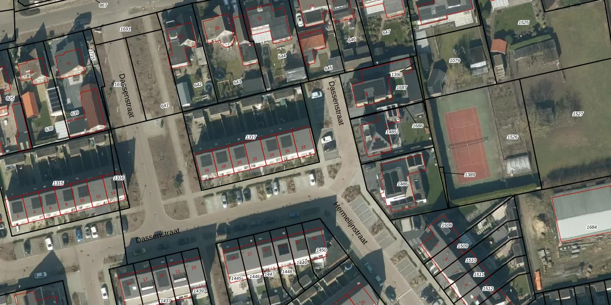 Dassenstraat 28 is gelegen op kadastraal perceel RPN00P1317. Deze kadastrale aanduiding is uniek en wordt gebruikt door het Kadaster om eigendomsrechten en andere zakelijke rechten vast te leggen. Het perceel maakt onderdeel uit van de kadastrale gemeente Rucphen.