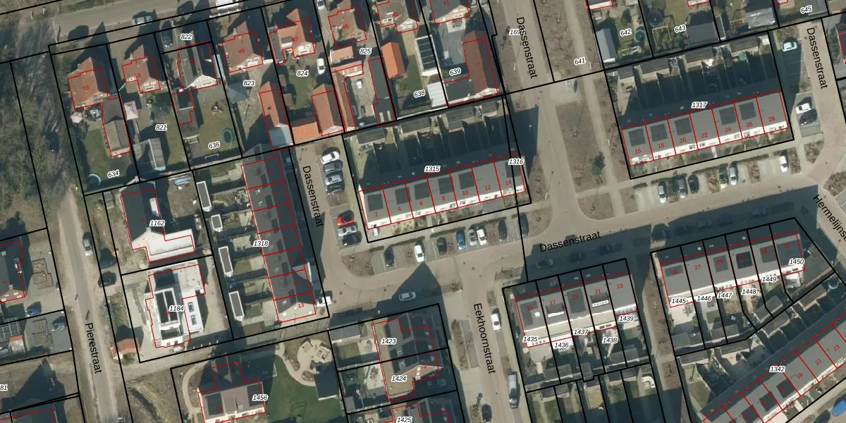 Dassenstraat 6 is gelegen op kadastraal perceel RPN00P1315. Deze kadastrale aanduiding is uniek en wordt gebruikt door het Kadaster om eigendomsrechten en andere zakelijke rechten vast te leggen. Het perceel maakt onderdeel uit van de kadastrale gemeente Rucphen.