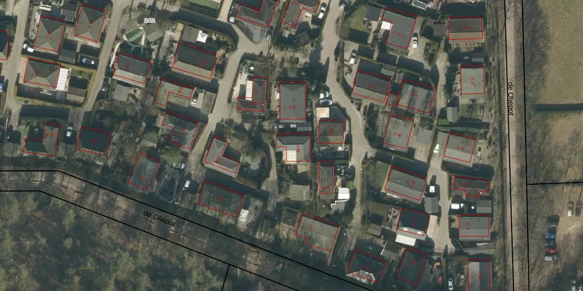 de Oliepot 9-28 is gelegen op kadastraal perceel RPN00L2322. Deze kadastrale aanduiding is uniek en wordt gebruikt door het Kadaster om eigendomsrechten en andere zakelijke rechten vast te leggen. Het perceel maakt onderdeel uit van de kadastrale gemeente Rucphen.