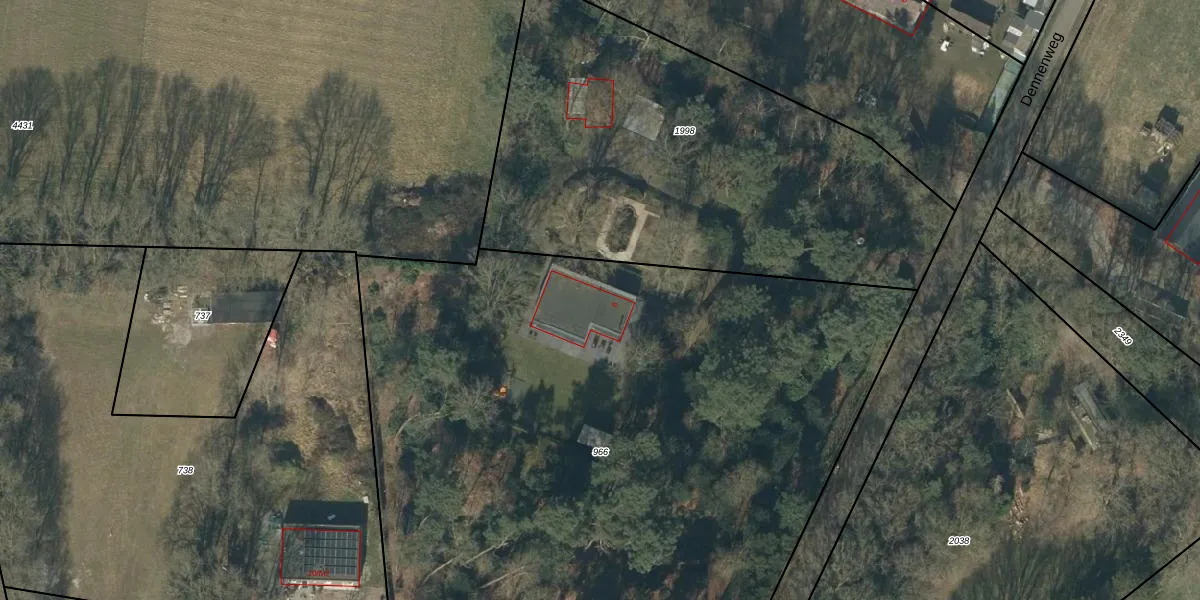 Het perceel waarop Dennenweg 8 staat heeft een oppervlakte van 5920 m². Dit is een zeer groot perceel. De perceeloppervlakte wordt geregistreerd door het Kadaster. Gedetailleerde informatie over de maten van dit perceel kunt u vinden in het rapport Kadastrale kaart met maatvoering van Dennenweg 8.