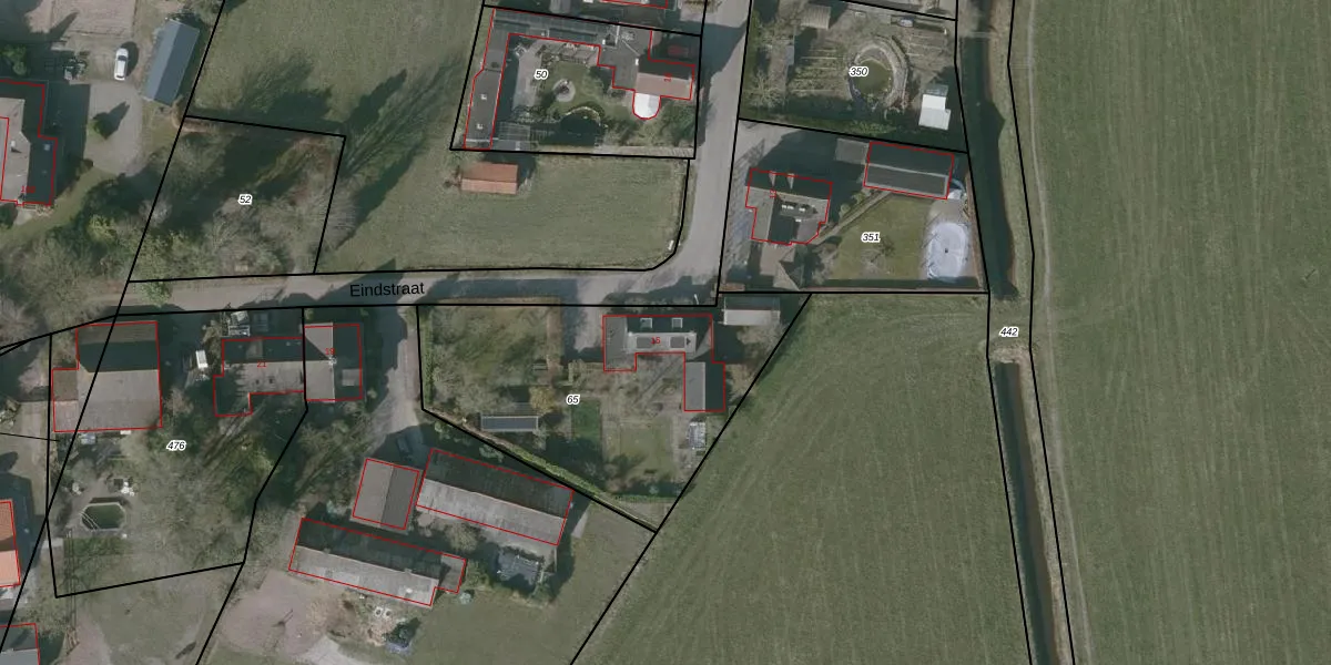 Het perceel waarop Eindstraat 15 staat heeft een oppervlakte van 1295 m². Dit is een zeer groot perceel. De perceeloppervlakte wordt geregistreerd door het Kadaster. Gedetailleerde informatie over de maten van dit perceel kunt u vinden in het rapport Kadastrale kaart met maatvoering van Eindstraat 15.