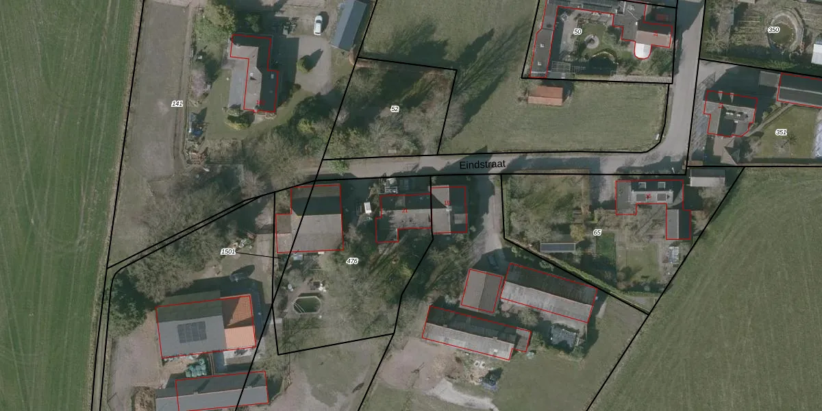 Het perceel waarop Eindstraat 21 staat heeft een oppervlakte van 1248 m². Dit is een zeer groot perceel. De perceeloppervlakte wordt geregistreerd door het Kadaster. Gedetailleerde informatie over de maten van dit perceel kunt u vinden in het rapport Kadastrale kaart met maatvoering van Eindstraat 21.