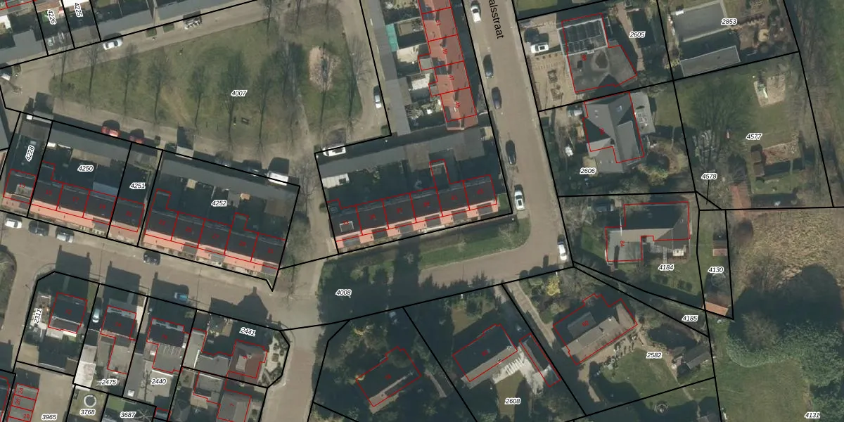 Het perceel waarop Frans Halsstraat 39 staat heeft een oppervlakte van 4001 m². Dit is een zeer groot perceel. De perceeloppervlakte wordt geregistreerd door het Kadaster. Gedetailleerde informatie over de maten van dit perceel kunt u vinden in het rapport Kadastrale kaart met maatvoering van Frans Halsstraat 39.