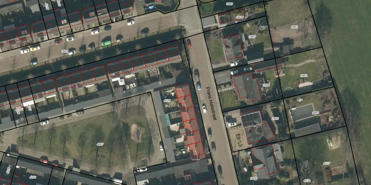 Het perceel waarop Frans Halsstraat 55 staat heeft een oppervlakte van 4001 m². Dit is een zeer groot perceel. De perceeloppervlakte wordt geregistreerd door het Kadaster. Gedetailleerde informatie over de maten van dit perceel kunt u vinden in het rapport Kadastrale kaart met maatvoering van Frans Halsstraat 55.