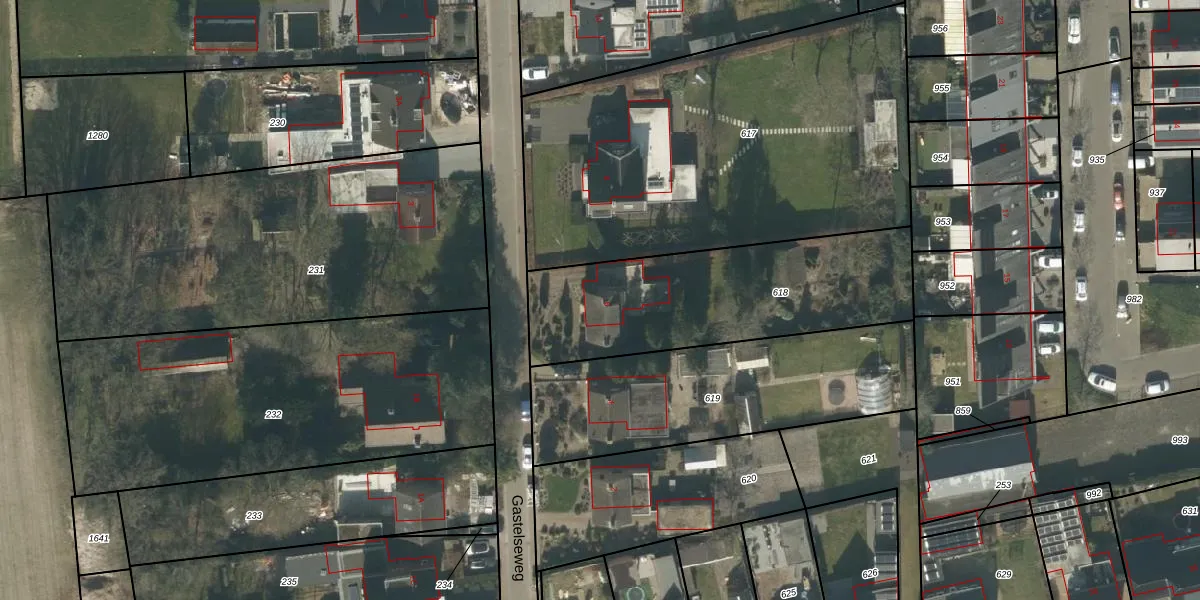 Het perceel waarop Gastelseweg 6 staat heeft een oppervlakte van 1000 m². Dit is een zeer groot perceel. De perceeloppervlakte wordt geregistreerd door het Kadaster. Gedetailleerde informatie over de maten van dit perceel kunt u vinden in het rapport Kadastrale kaart met maatvoering van Gastelseweg 6.