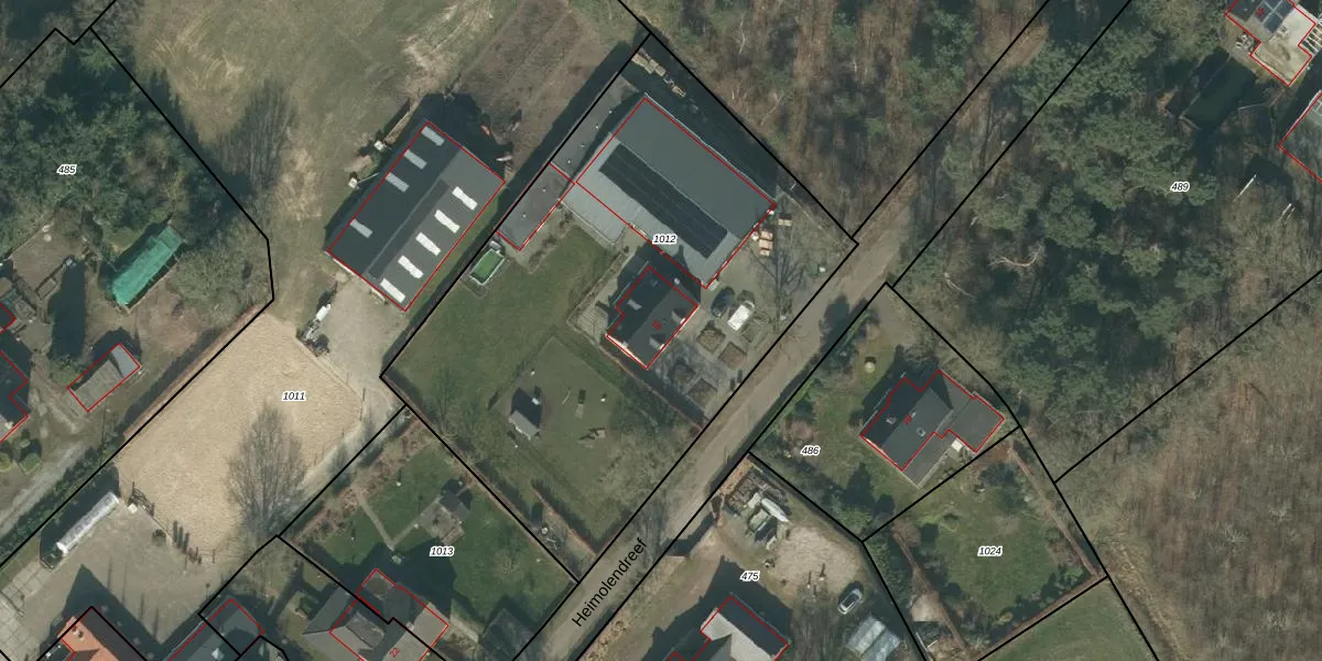 Het perceel waarop Heimolendreef 18 staat heeft een oppervlakte van 2900 m². Dit is een zeer groot perceel. De perceeloppervlakte wordt geregistreerd door het Kadaster. Gedetailleerde informatie over de maten van dit perceel kunt u vinden in het rapport Kadastrale kaart met maatvoering van Heimolendreef 18.
