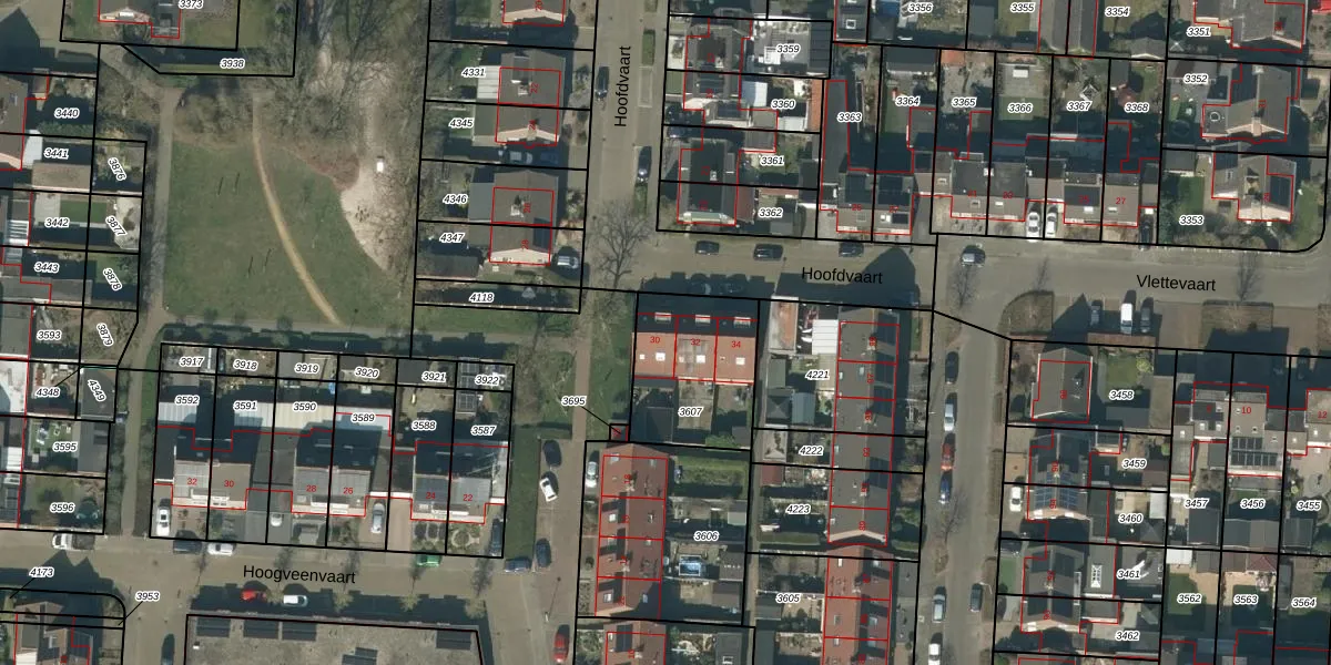 Het perceel waarop Hoofdvaart 30 staat heeft een oppervlakte van 413 m². Dit is een groot perceel. De perceeloppervlakte wordt geregistreerd door het Kadaster. Gedetailleerde informatie over de maten van dit perceel kunt u vinden in het rapport Kadastrale kaart met maatvoering van Hoofdvaart 30.
