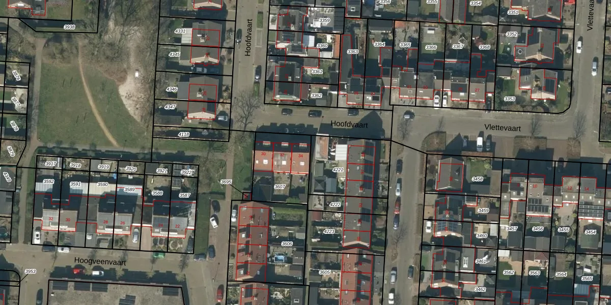 Het perceel waarop Hoofdvaart 34 staat heeft een oppervlakte van 413 m². Dit is een groot perceel. De perceeloppervlakte wordt geregistreerd door het Kadaster. Gedetailleerde informatie over de maten van dit perceel kunt u vinden in het rapport Kadastrale kaart met maatvoering van Hoofdvaart 34.