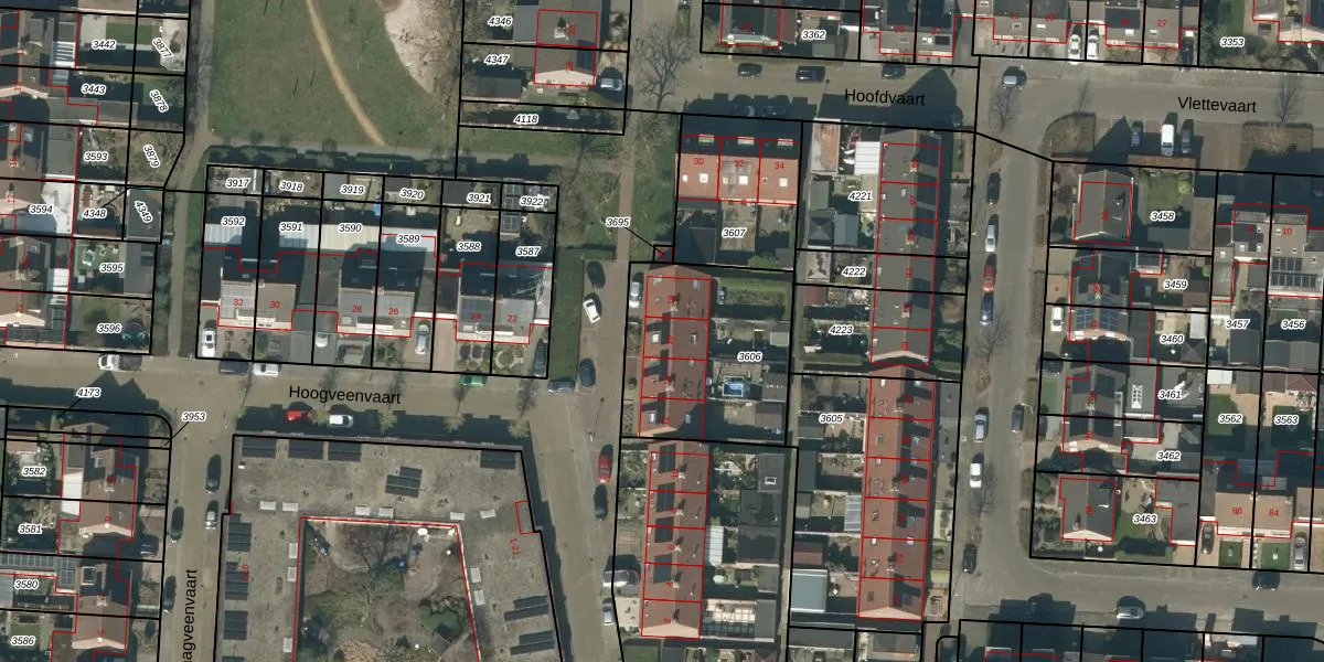 Het perceel waarop Hoogveenvaart 16 staat heeft een oppervlakte van 661 m². Dit is een groot perceel. De perceeloppervlakte wordt geregistreerd door het Kadaster. Gedetailleerde informatie over de maten van dit perceel kunt u vinden in het rapport Kadastrale kaart met maatvoering van Hoogveenvaart 16.