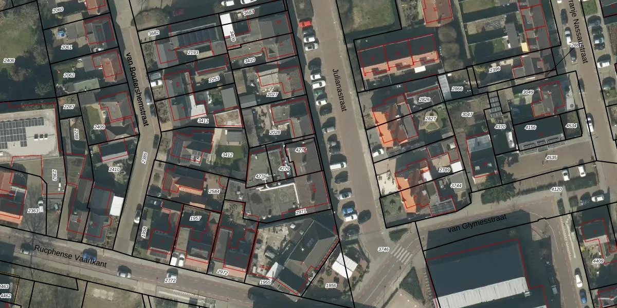 Julianastraat 5-A is gelegen op kadastraal perceel RPN00C4278. Deze kadastrale aanduiding is uniek en wordt gebruikt door het Kadaster om eigendomsrechten en andere zakelijke rechten vast te leggen. Het perceel maakt onderdeel uit van de kadastrale gemeente Rucphen.
