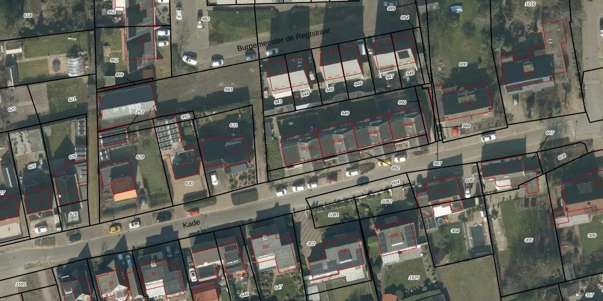 Het perceel waarop Kade 34-A staat heeft een oppervlakte van 905 m². Dit is een groot perceel. De perceeloppervlakte wordt geregistreerd door het Kadaster. Gedetailleerde informatie over de maten van dit perceel kunt u vinden in het rapport Kadastrale kaart met maatvoering van Kade 34-A.
