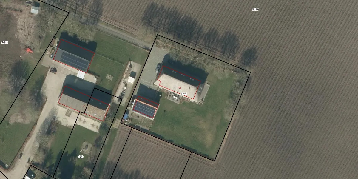Het adres is gelegen op perceel 1281 in de sectie P en de kadastrale gemeente Rucphen. De kadastrale aanduiding is aldus RPN00-P-1281. De gemiddelde perceelgrootte in Rucphen is 4094,7 m². Dit perceel is kleiner: de perceeloppervlakte bedraagt 3015 m². Het grootste perceel in de kadastrale gemeente is 43,3 ha. Het kleinste perceel heeft een oppervlakte van 0 m². Er zijn geen andere adressen aanwezig op het perceel. De laatste wijziging in het de Basisregistratie Kadaster (BRK) was op 06-05-2020.