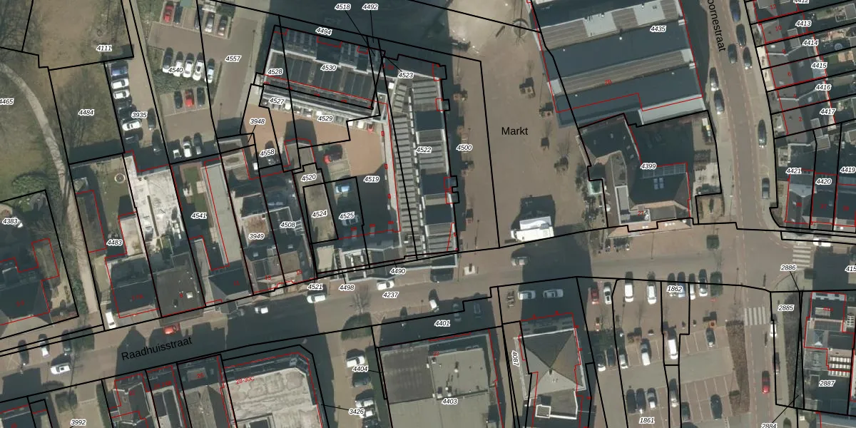 Het perceel waarop Markt 11 staat heeft een oppervlakte van 547 m². Dit is een groot perceel. De perceeloppervlakte wordt geregistreerd door het Kadaster. Gedetailleerde informatie over de maten van dit perceel kunt u vinden in het rapport Kadastrale kaart met maatvoering van Markt 11.