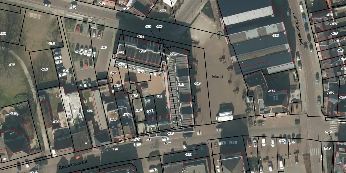 Het perceel waarop Markt 29 staat heeft een oppervlakte van 547 m². Dit is een groot perceel. De perceeloppervlakte wordt geregistreerd door het Kadaster. Gedetailleerde informatie over de maten van dit perceel kunt u vinden in het rapport Kadastrale kaart met maatvoering van Markt 29.