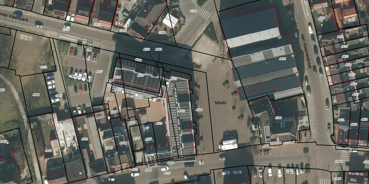 Het perceel waarop Markt 9 staat heeft een oppervlakte van 547 m². Dit is een groot perceel. De perceeloppervlakte wordt geregistreerd door het Kadaster. Gedetailleerde informatie over de maten van dit perceel kunt u vinden in het rapport Kadastrale kaart met maatvoering van Markt 9.