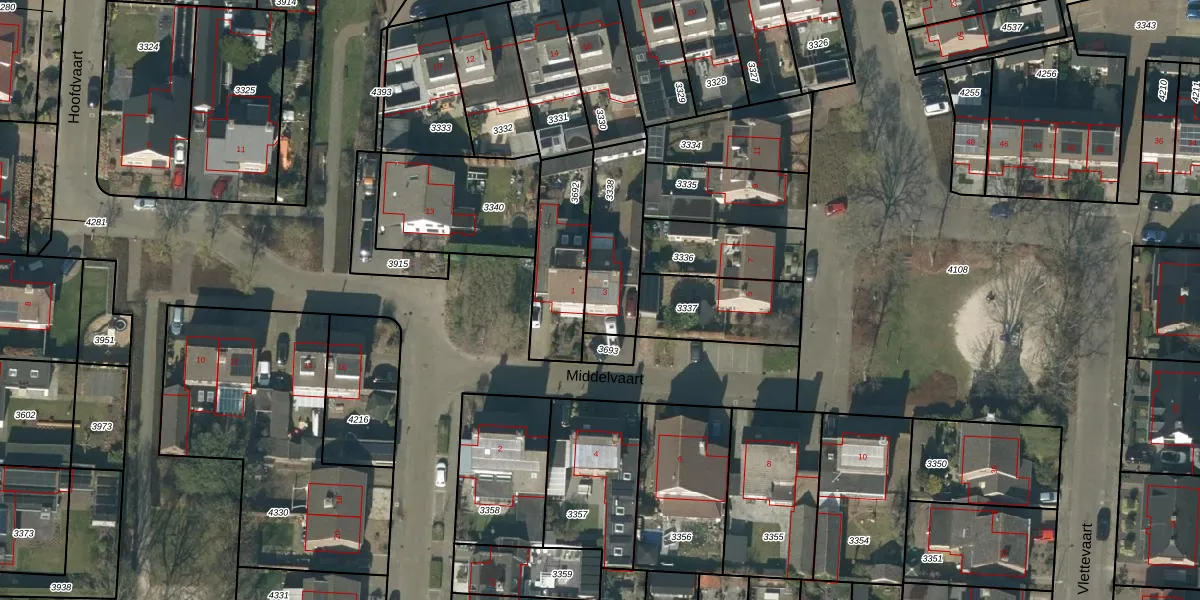 Het perceel waarop Middelvaart 3 staat heeft een oppervlakte van 277 m². Dit is een middelgroot perceel. De perceeloppervlakte wordt geregistreerd door het Kadaster. Gedetailleerde informatie over de maten van dit perceel kunt u vinden in het rapport Kadastrale kaart met maatvoering van Middelvaart 3.