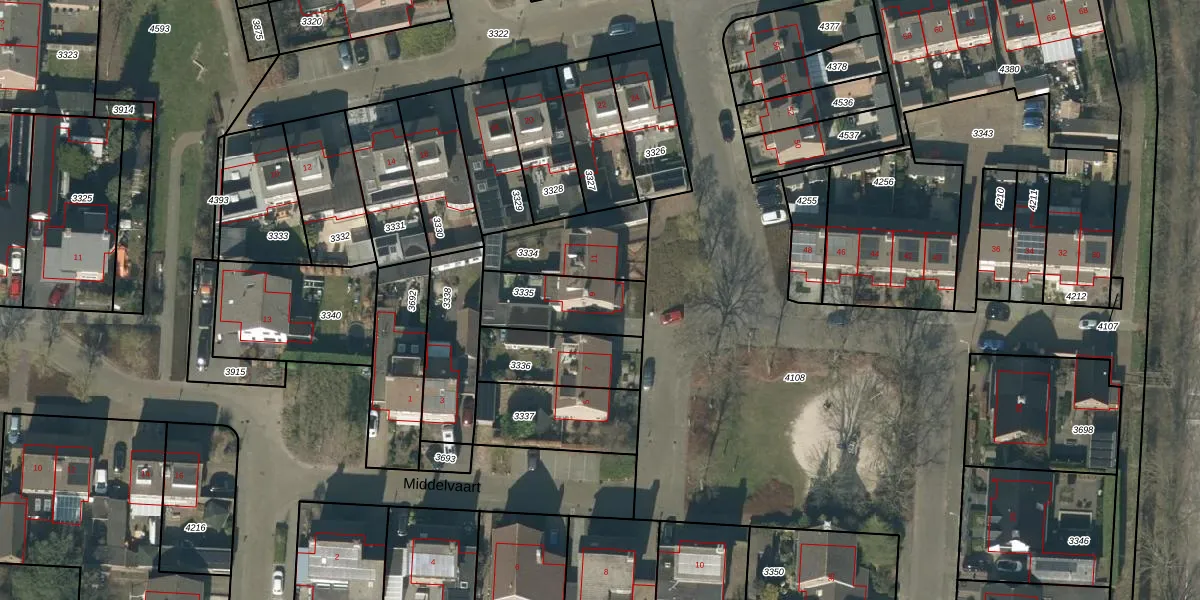 Middelvaart 9 is gelegen op kadastraal perceel RPN00C3335. Deze kadastrale aanduiding is uniek en wordt gebruikt door het Kadaster om eigendomsrechten en andere zakelijke rechten vast te leggen. Het perceel maakt onderdeel uit van de kadastrale gemeente Rucphen.
