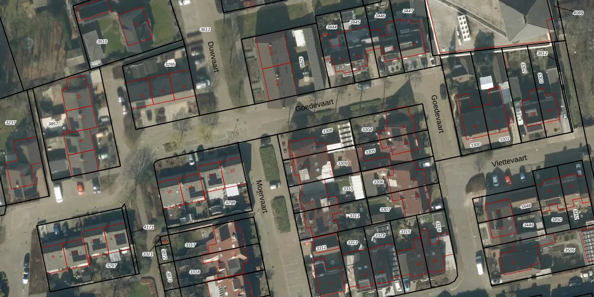 Het perceel waarop Moervaart 1 staat heeft een oppervlakte van 227 m². Dit is een middelgroot perceel. De perceeloppervlakte wordt geregistreerd door het Kadaster. Gedetailleerde informatie over de maten van dit perceel kunt u vinden in het rapport Kadastrale kaart met maatvoering van Moervaart 1.