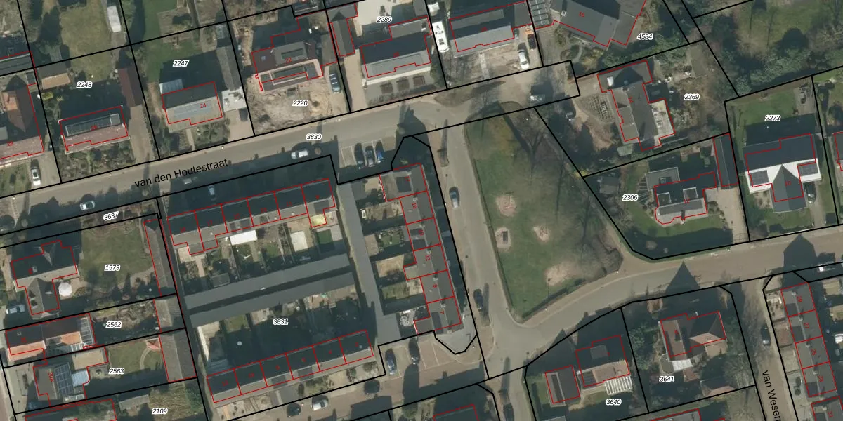 Het adres is gelegen op perceel 3831 in de sectie C en de kadastrale gemeente Rucphen. De kadastrale aanduiding is aldus RPN00-C-3831. Het perceel is kleiner dan gemiddeld in Rucphen. Het perceel is 3400 m² groot, terwijl het gemiddelde ligt op 4094,96 m². De grootste perceeloppervlakte in de kadastrale gemeente is 43,3 ha. De kleinste oppervlakte bedraagt 0 m². Er zijn 18 adressen aanwezig op het perceel. In de Basisregistratie Kadaster (BRK) werden de grenzen van het perceel geregistreerd op 22-10-2009.