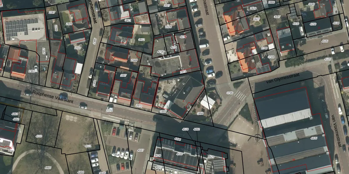 Rucphense Vaartkant 2-B is gelegen op kadastraal perceel RPN00C1955. Deze kadastrale aanduiding is uniek en wordt gebruikt door het Kadaster om eigendomsrechten en andere zakelijke rechten vast te leggen. Het perceel maakt onderdeel uit van de kadastrale gemeente Rucphen.