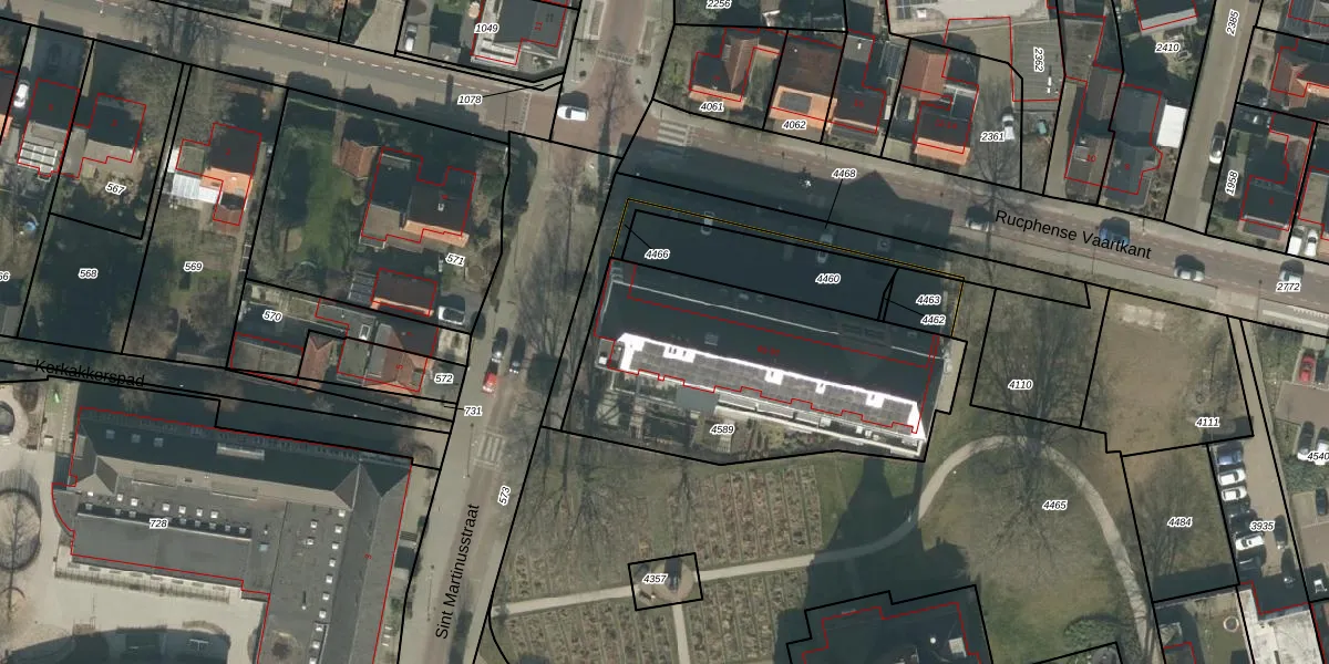 Het adres is gelegen op perceel 4589 in de sectie C en de kadastrale gemeente Rucphen. De kadastrale aanduiding is aldus RPN00-C-4589. De gemiddelde perceelgrootte in Rucphen is 4091,58 m². Dit perceel is kleiner: de perceeloppervlakte bedraagt 1293 m². Het kleinste perceel in de kadastrale gemeente is 0 m² groot. De grootste perceeloppervlakte is 43,3 ha. Op het perceel liggen in totaal 17 adressen. De huidige grenzen van het perceel zijn digitaal in de Basisregistratie Kadaster (BRK) geregistreerd op 09-02-2023.