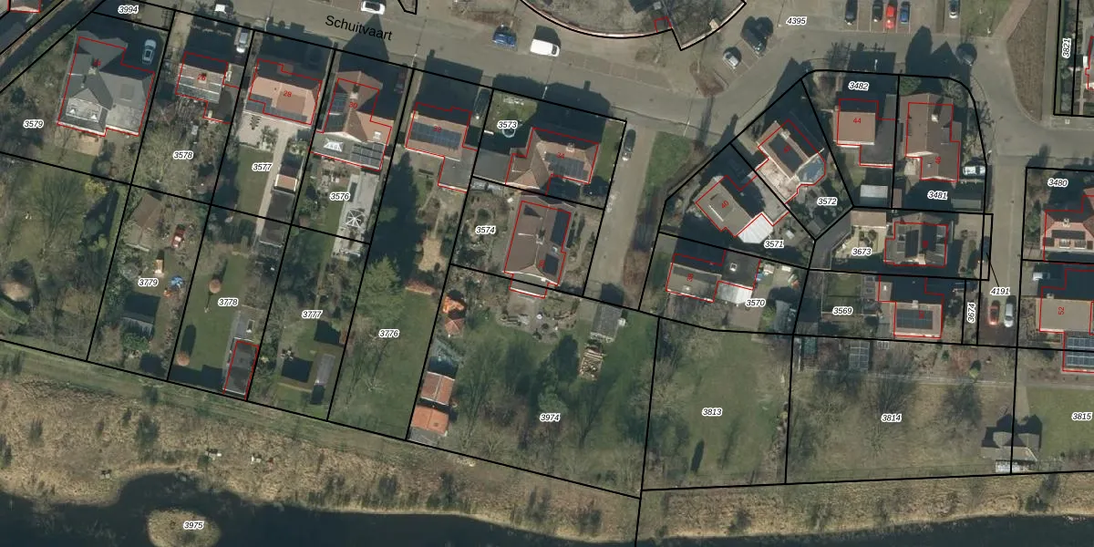 Het perceel waarop Schuitvaart 36 staat heeft een oppervlakte van 414 m². Dit is een groot perceel. De perceeloppervlakte wordt geregistreerd door het Kadaster. Gedetailleerde informatie over de maten van dit perceel kunt u vinden in het rapport Kadastrale kaart met maatvoering van Schuitvaart 36.