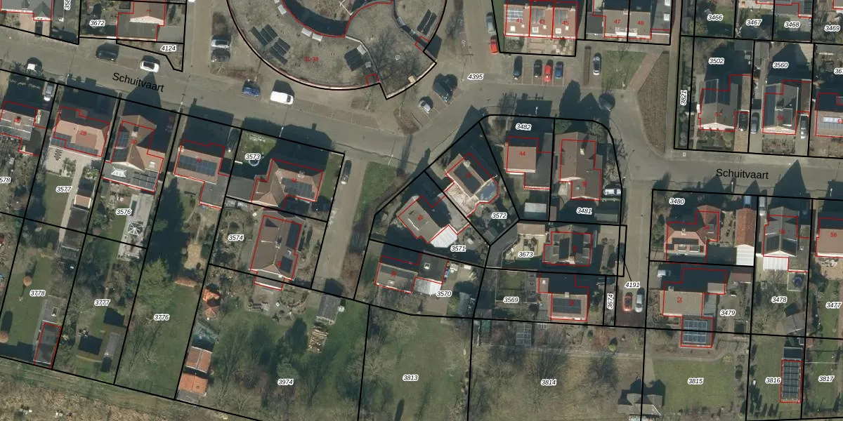 Het perceel waarop Schuitvaart 40 staat heeft een oppervlakte van 352 m². Dit is een groot perceel. De perceeloppervlakte wordt geregistreerd door het Kadaster. Gedetailleerde informatie over de maten van dit perceel kunt u vinden in het rapport Kadastrale kaart met maatvoering van Schuitvaart 40.