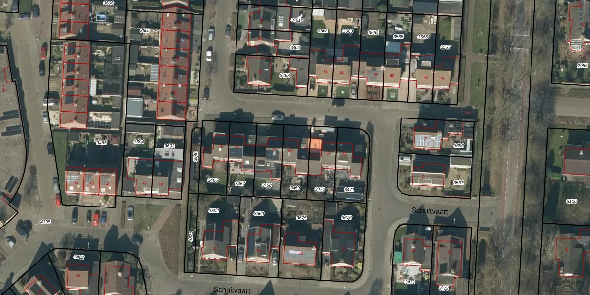 Gebruik de zoekbalk of klik op een perceel voor informatie over de adressen binnen dit perceel.