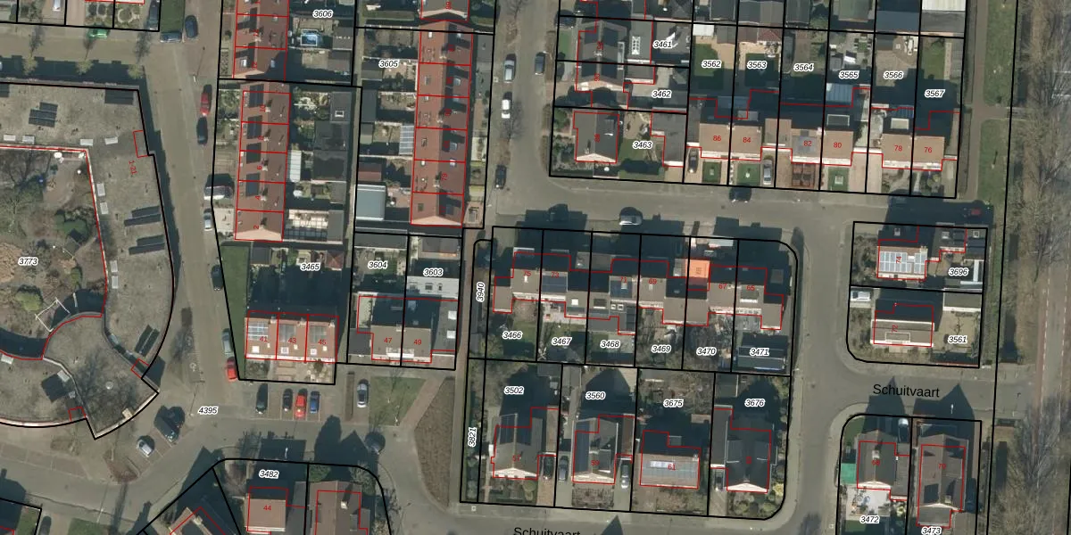 Het perceel waarop Schuitvaart 75 staat heeft een oppervlakte van 238 m². Dit is een middelgroot perceel. De perceeloppervlakte wordt geregistreerd door het Kadaster. Gedetailleerde informatie over de maten van dit perceel kunt u vinden in het rapport Kadastrale kaart met maatvoering van Schuitvaart 75.