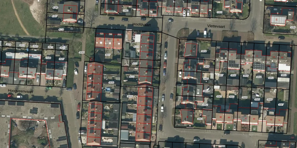 Het perceel waarop Schuitvaart 91 staat heeft een oppervlakte van 347 m². Dit is een groot perceel. De perceeloppervlakte wordt geregistreerd door het Kadaster. Gedetailleerde informatie over de maten van dit perceel kunt u vinden in het rapport Kadastrale kaart met maatvoering van Schuitvaart 91.