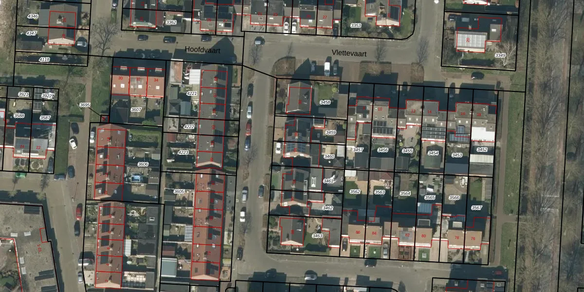 Gebruik de zoekbalk of klik op een perceel voor informatie over de adressen binnen dit perceel.
