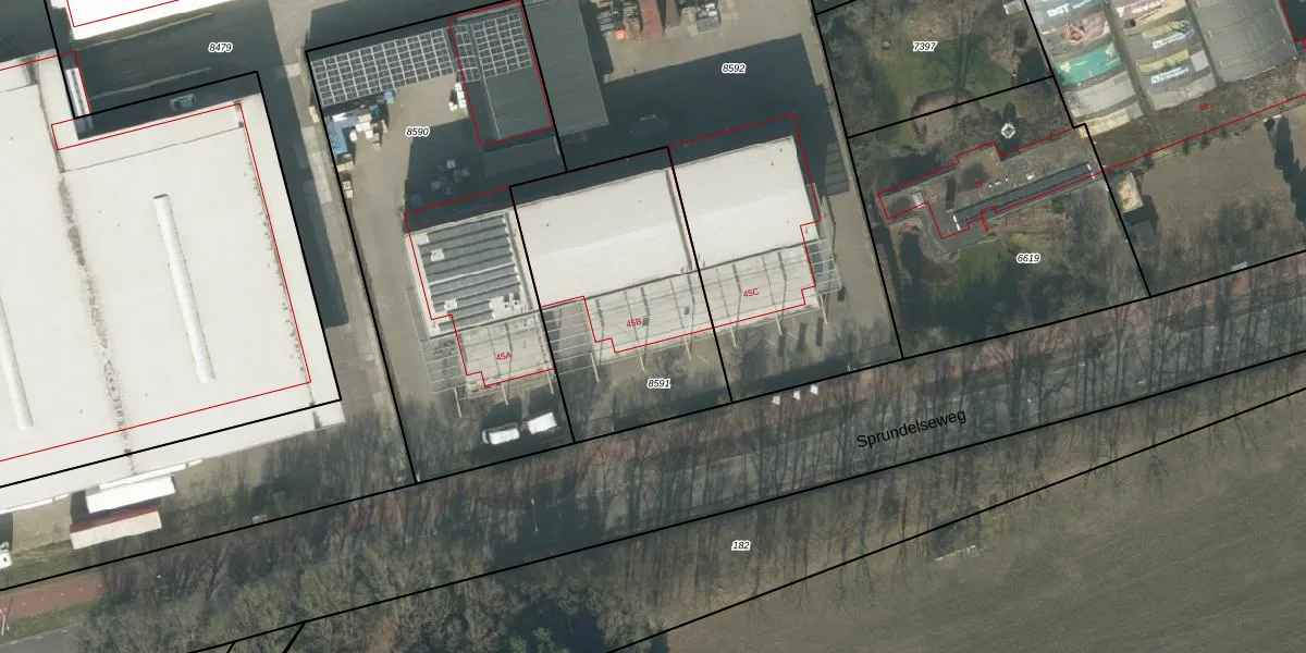 Sprundelseweg 45-B is gelegen op kadastraal perceel RPN00D8591. Deze kadastrale aanduiding is uniek en wordt gebruikt door het Kadaster om eigendomsrechten en andere zakelijke rechten vast te leggen. Het perceel maakt onderdeel uit van de kadastrale gemeente Rucphen.