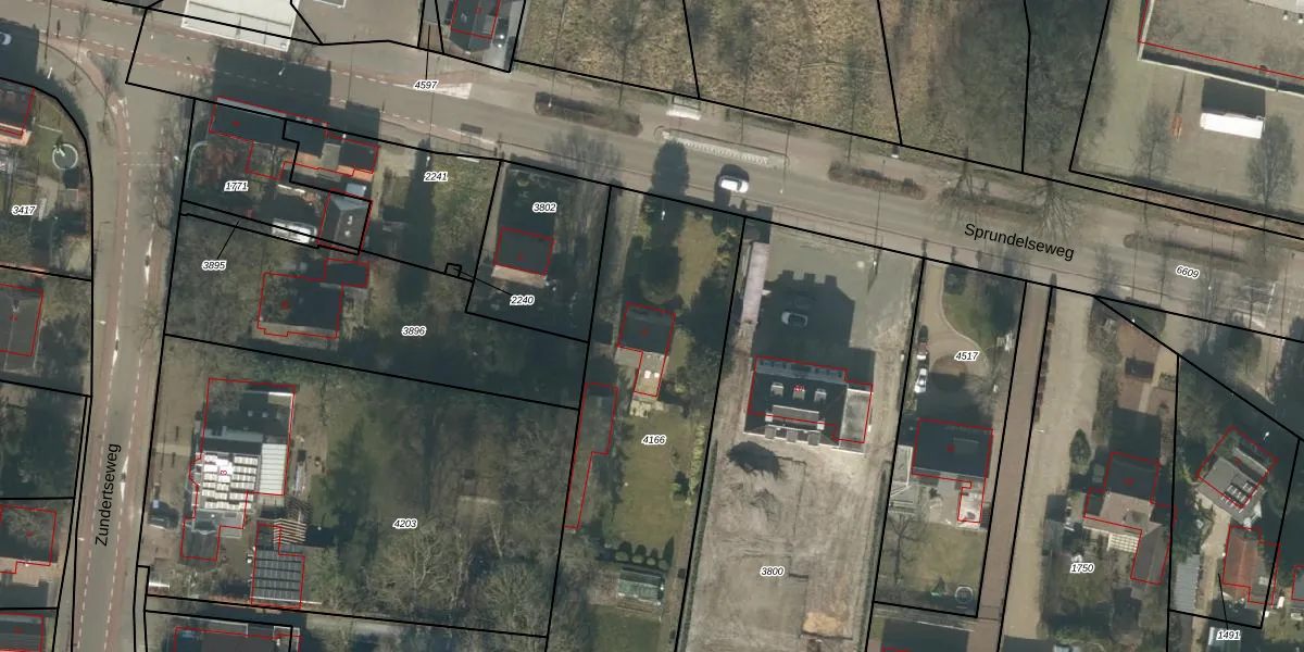 Het perceel waarop Sprundelseweg 8 staat heeft een oppervlakte van 1625 m². Dit is een zeer groot perceel. De perceeloppervlakte wordt geregistreerd door het Kadaster. Gedetailleerde informatie over de maten van dit perceel kunt u vinden in het rapport Kadastrale kaart met maatvoering van Sprundelseweg 8.