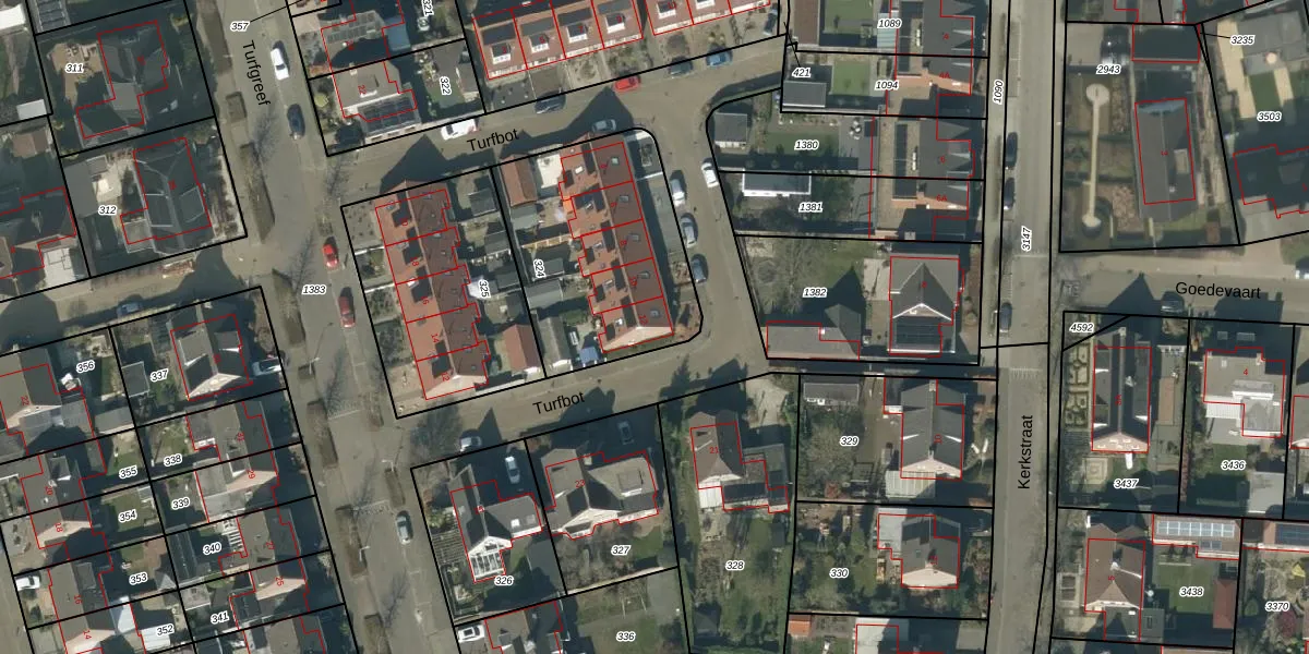 Het perceel waarop Turfbot 12 staat heeft een oppervlakte van 847 m². Dit is een groot perceel. De perceeloppervlakte wordt geregistreerd door het Kadaster. Gedetailleerde informatie over de maten van dit perceel kunt u vinden in het rapport Kadastrale kaart met maatvoering van Turfbot 12.