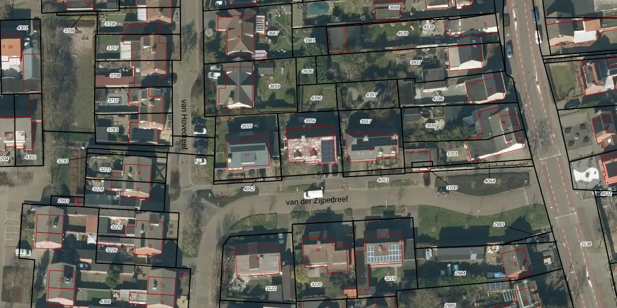 Gebruik de zoekbalk of klik op een perceel voor informatie over de adressen binnen dit perceel.