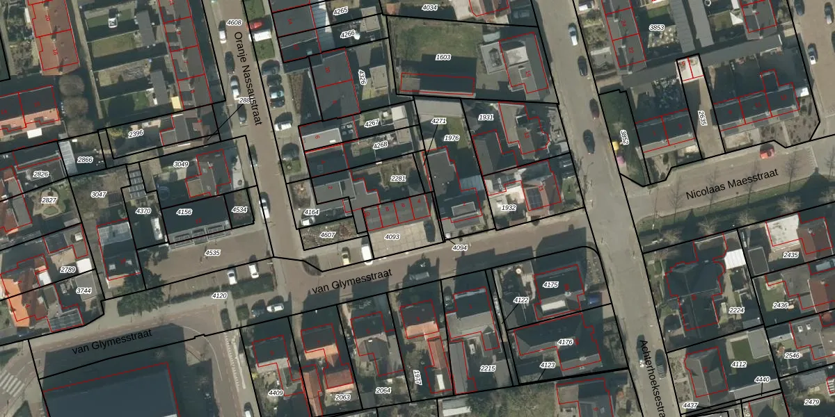 Het perceel waarop van Glymesstraat 4 staat heeft een oppervlakte van 213 m². Dit is een middelgroot perceel. De perceeloppervlakte wordt geregistreerd door het Kadaster. Gedetailleerde informatie over de maten van dit perceel kunt u vinden in het rapport Kadastrale kaart met maatvoering van van Glymesstraat 4.