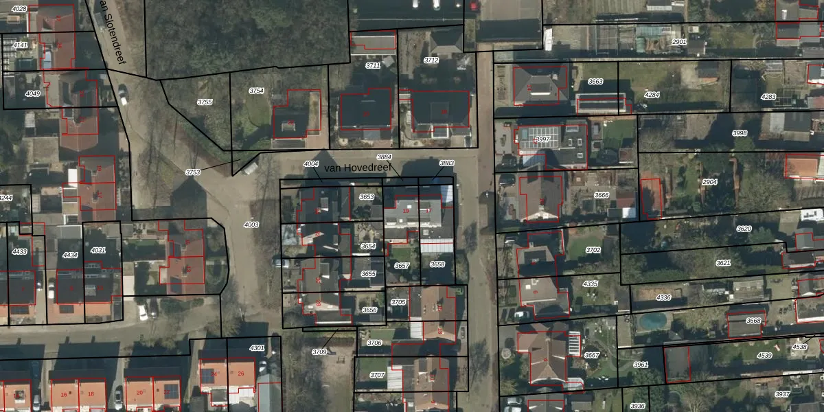 van Hovedreef 19 is gelegen op kadastraal perceel RPN00C3657. Deze kadastrale aanduiding is uniek en wordt gebruikt door het Kadaster om eigendomsrechten en andere zakelijke rechten vast te leggen. Het perceel maakt onderdeel uit van de kadastrale gemeente Rucphen.