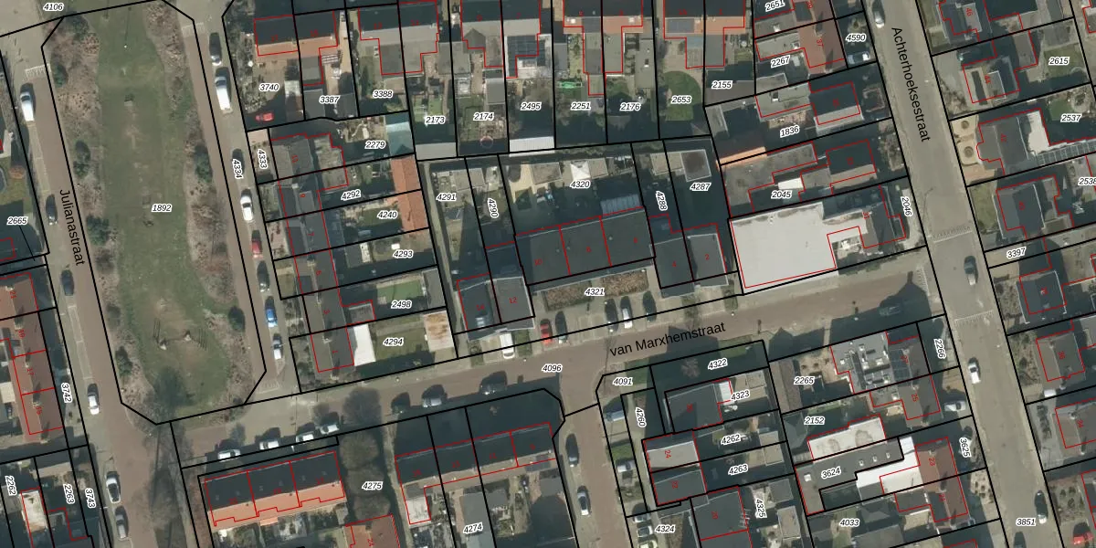 Het perceel waarop van Marxhemstraat 10 staat heeft een oppervlakte van 560 m². Dit is een groot perceel. De perceeloppervlakte wordt geregistreerd door het Kadaster. Gedetailleerde informatie over de maten van dit perceel kunt u vinden in het rapport Kadastrale kaart met maatvoering van van Marxhemstraat 10.