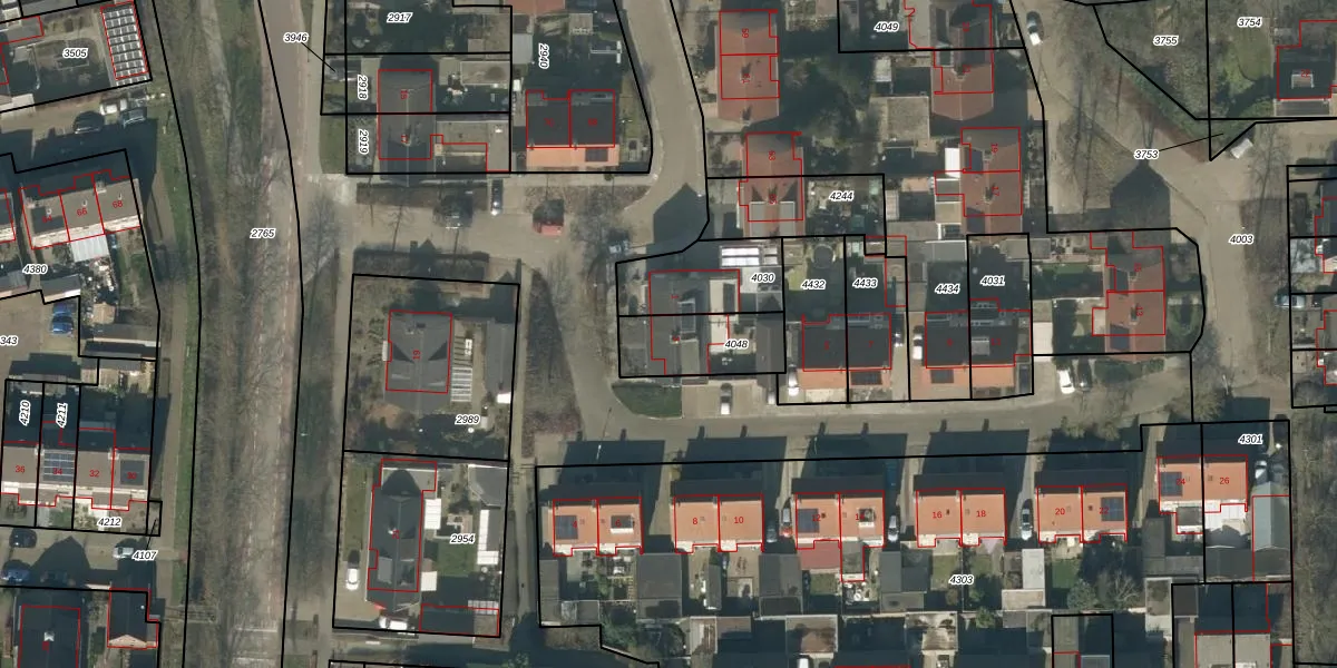 Gebruik de zoekbalk of klik op een perceel voor informatie over de adressen binnen dit perceel.